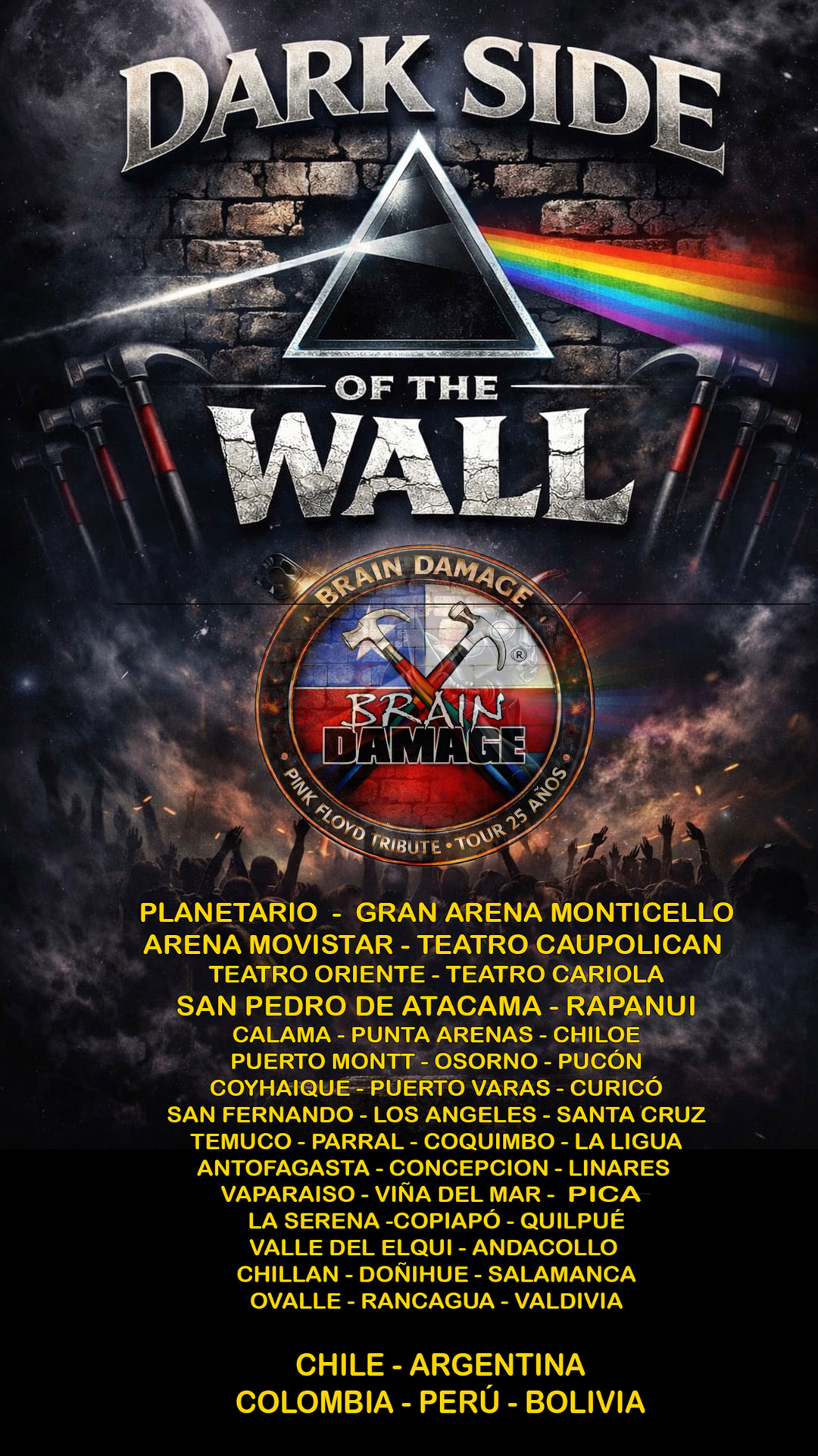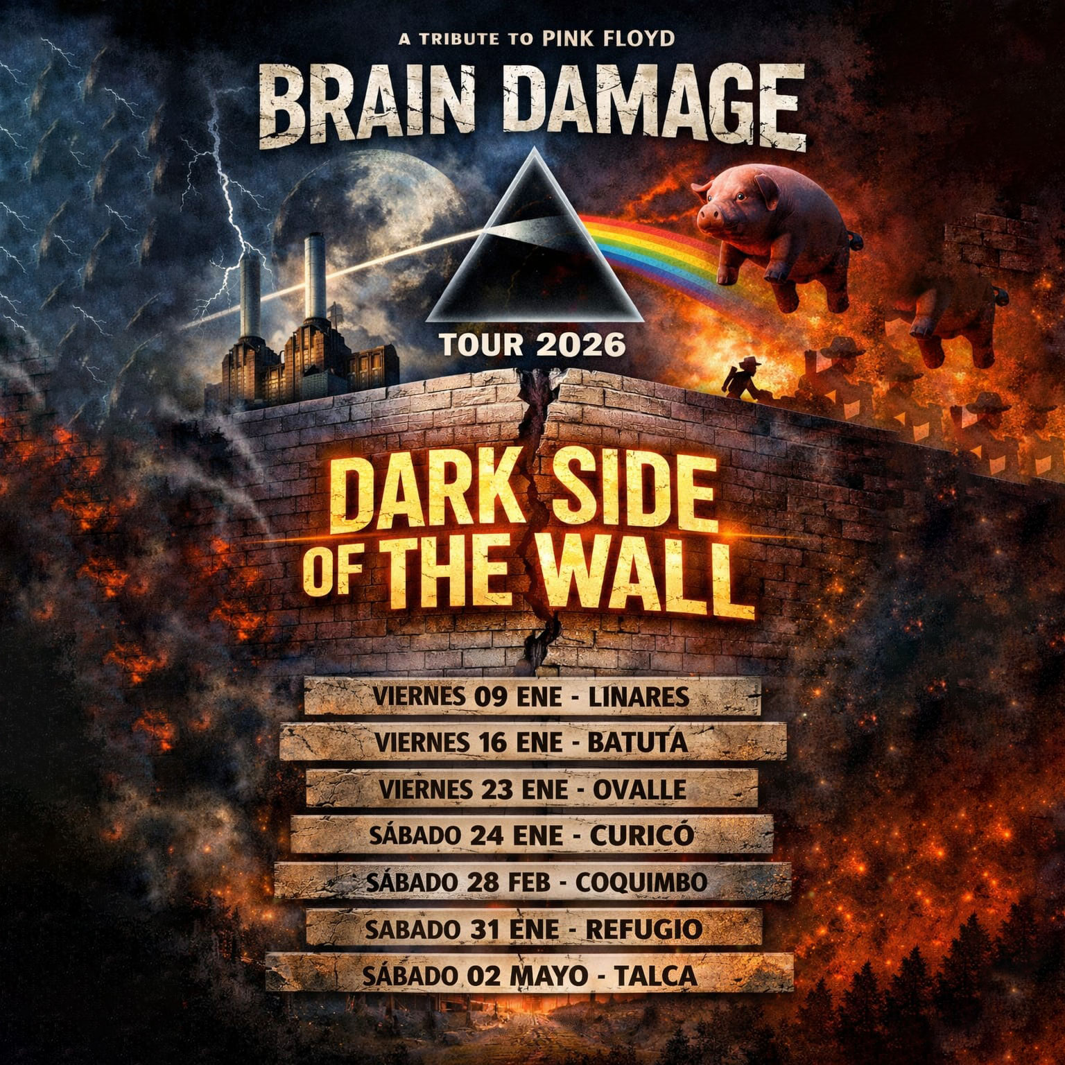 La gira contempla presentaciones en distintas ciudades del país durante los primeros meses del año, reafirmando el valor de los espacios culturales y teatros como puntos de encuentro para la música en vivo. “Dark Side of the Wall – Tour 2026” se instala así como una experiencia cultural que celebra el legado de Pink Floyd desde la emoción, la contemplación y el disfrute compartido.